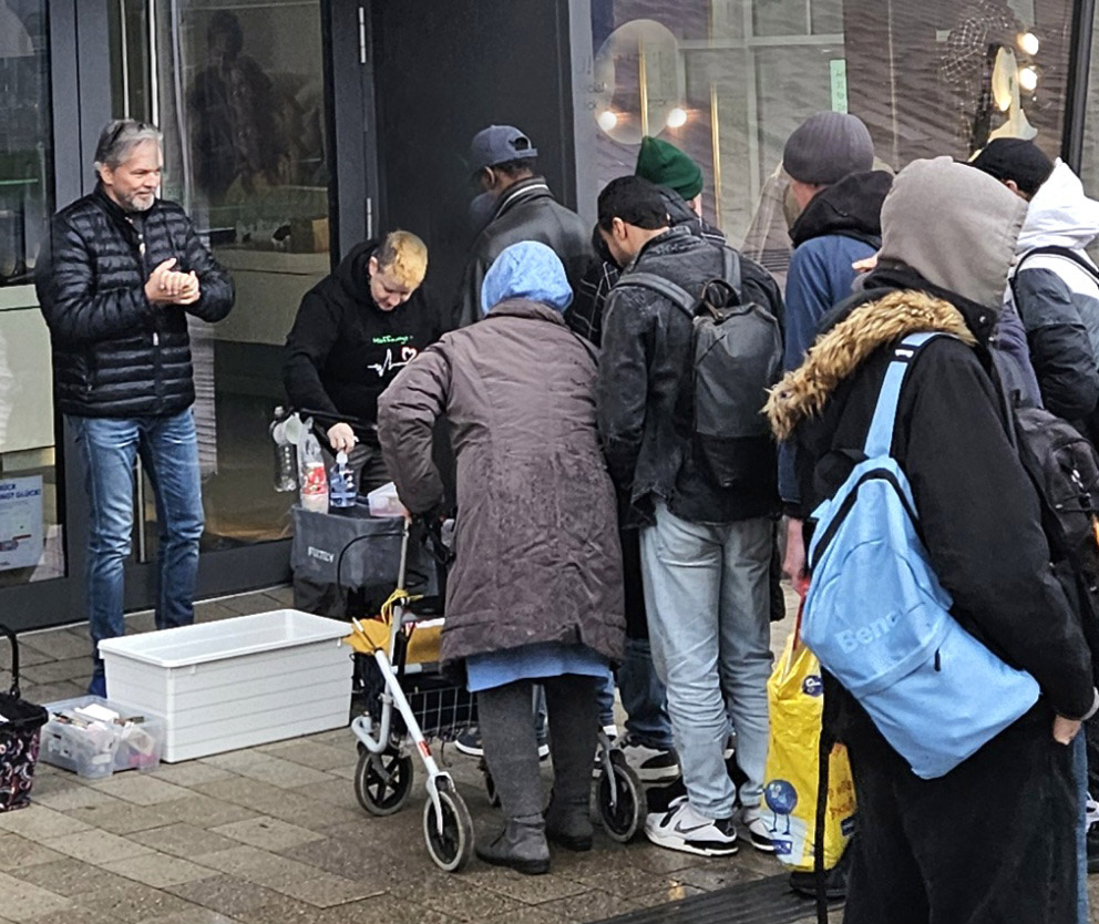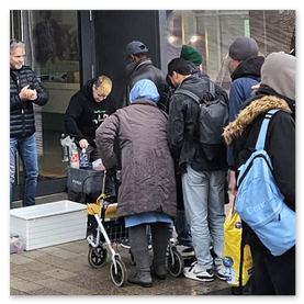 Die oben gezeigten Bilder zeigen die Versorgung obdachloser älterer Menschen in Zusammenarbeit mit dem Ankerplatz Sozialwerk.