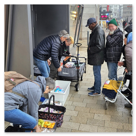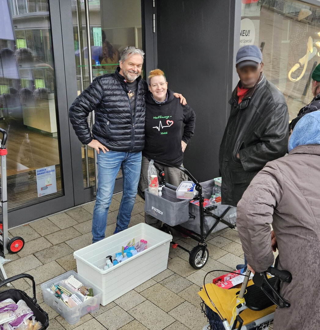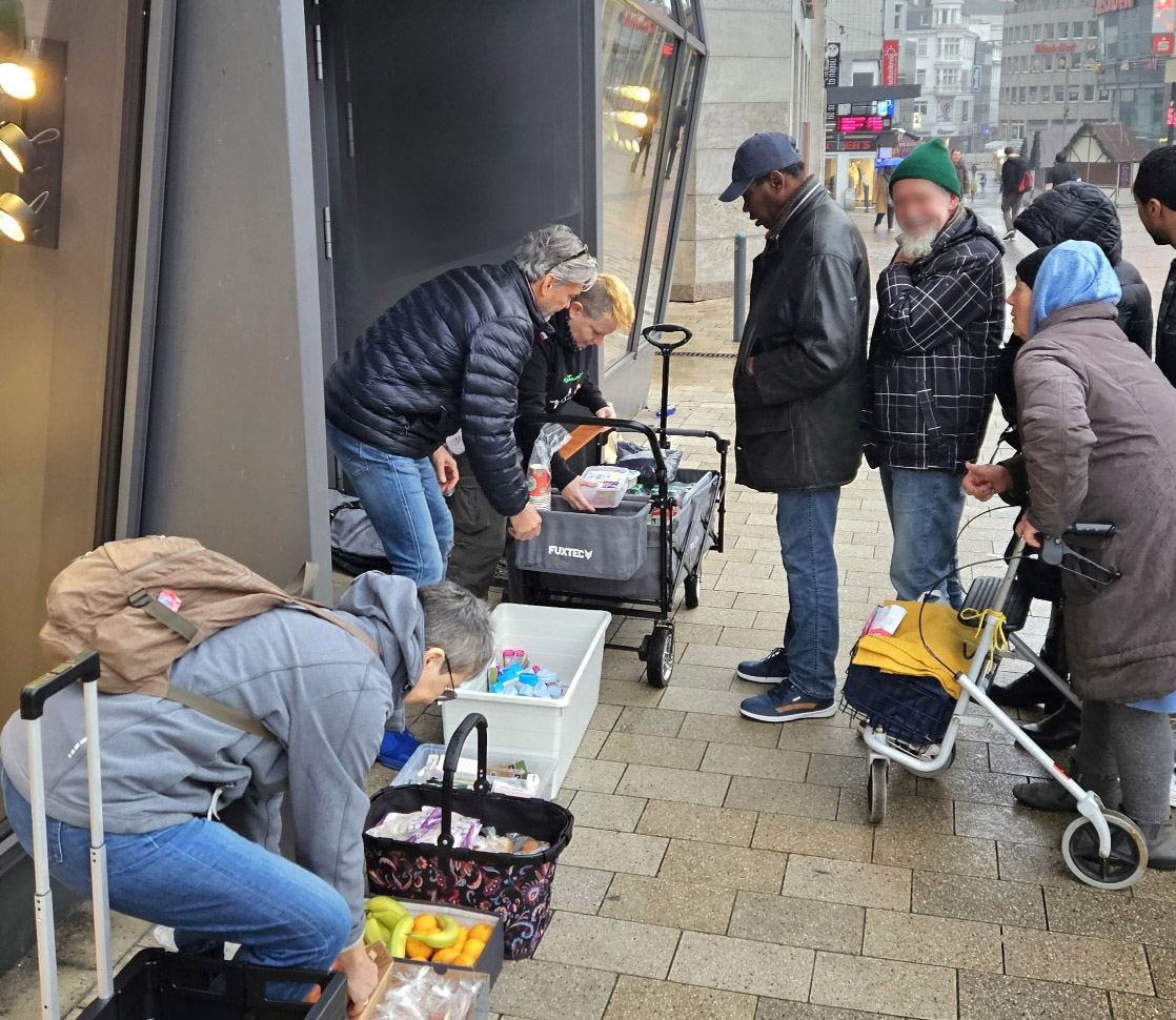 Die oben gezeigten Bilder zeigen die Versorgung obdachloser älterer Menschen in Zusammenarbeit mit dem Ankerplatz Sozialwerk.
