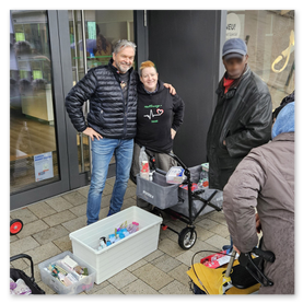 Die oben gezeigten Bilder zeigen die bisherigen Brotkorb-Spendenaktionen in verschiedenen Bereichen und in Zusammenarbeit mit dem Ankerplatz Sozialwerk.